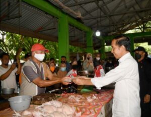 Bagikan Bansos di Pasar Muntok Bangka Barat, Presiden Janji Kalau APBN Meningkat akan Ditambah