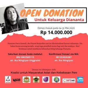 BALIKPAPAN, Inibalikpapan.com – Aksi gerakan kolektif Koalisi untuk Masyarakat Adat dan Kebebasan Pers berhasil mengumpulkan dana sebesar Rp 14 juta. Dana tersebutakan diserahkan ke istri Diananta Putra Sumedi. Diananta yang merupakan ks Pemimpin Redaksi Banjarhits, saat ini mendekam di sel tahanan Polres Kotabaru, gara-gara disangkakan telah melanggar Undang-undang ITE lewat berita yang ia muat. Donasi […]