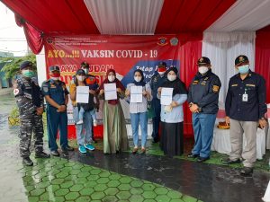 Pangkalan Lanal Balikpapan Giatkan Serbuan Vaksinasi Nelayan di TPI Telaga Emas Kampung Baru