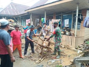 TNI-Polri Bersihkan Sampah Dampak Banjir 6 Lokasi di Barabai