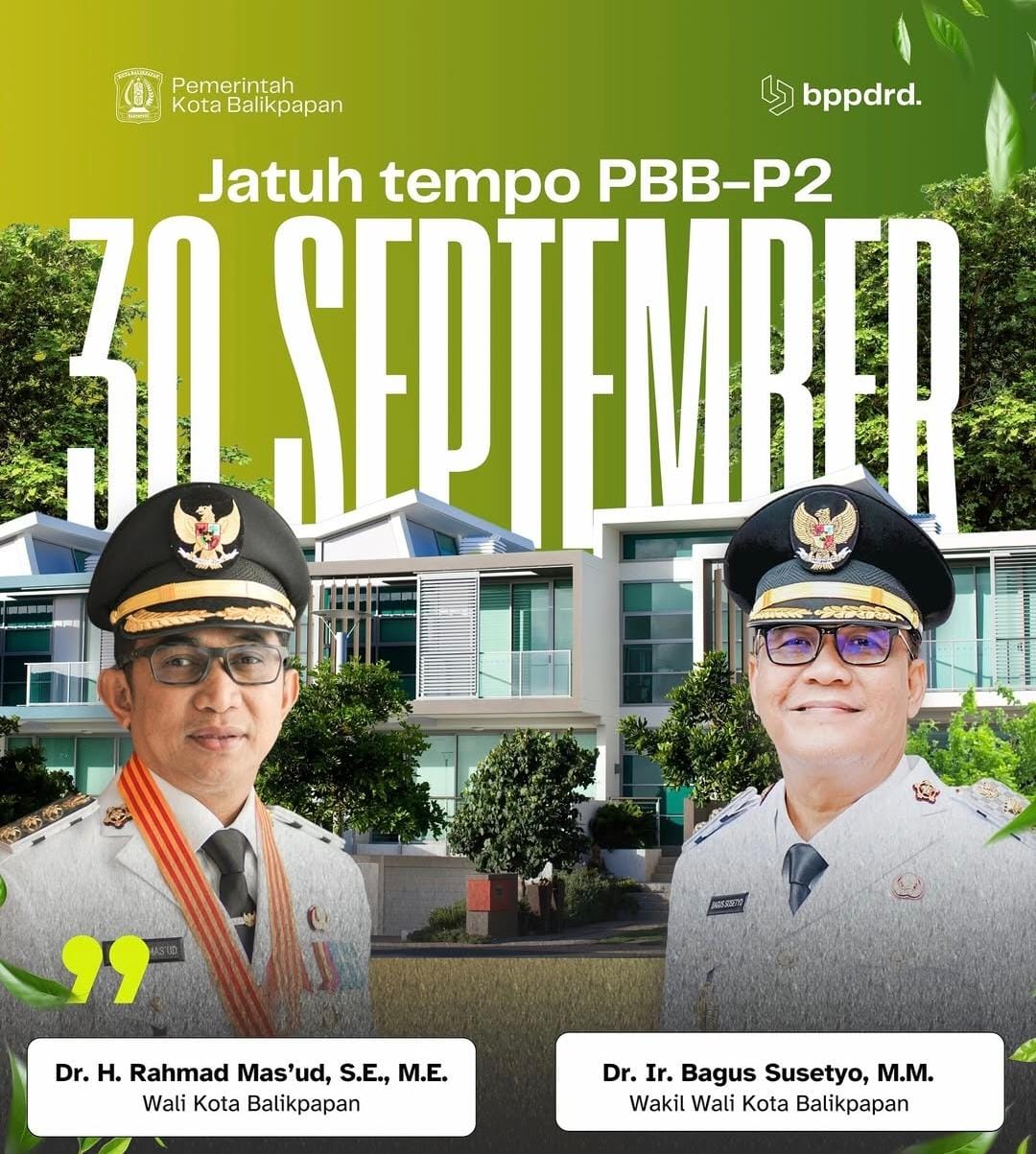 BALIKPAPAN,Inibalikpapan.com – Badan Pengelola Pajak Daerah dan Retribusi Daerah (BPPDRD) Kota Balikpapan mengingatkan masyarakat untuk segera melunasi kewajiban Pajak Bumi dan Bangunan Perdesaan dan Perkotaan (PBB-P2). Pasalnya, batas waktu pembayaran jatuh pada 30 September 2025 mendatang.