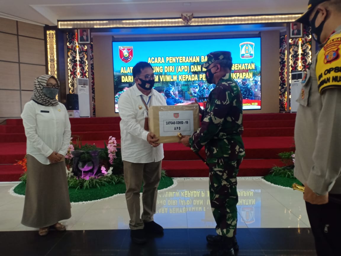 Bantuan APD tersebut diserahkan langsung Pangdam VI Mulawarman Mayjen TNI Heri Wiranto didanpingi Kapolda Kaltim Irjen Pol Muktiono kepada Wali Kota Balikpapan Rizal Effendi didampingi Kepada Dinas Kesehatan Andi Sri Juliarty.