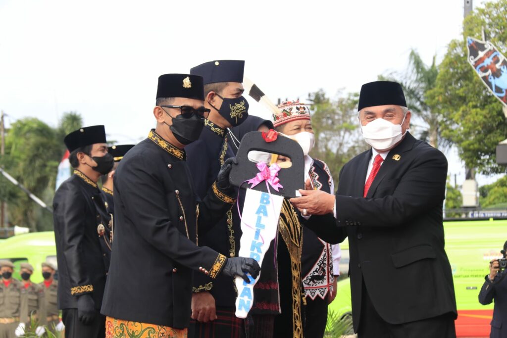 BALIKPAPAN,Inibalikpapan.com — Dalam rangka memperingati HUT ke-65 Provinsi Kaltim tahun 2022, yang mengangkat tema Kaltim Kuat Kaltim Berdaulat dilaksanakan upacara dan pemberian panji-panji keberhasilan pembangunan daerah Provinsi Kaltim tahun 2021, yang dilaksanakan di halaman Kantor Gubernur Kaltim, pada Senin (10/1/2022).