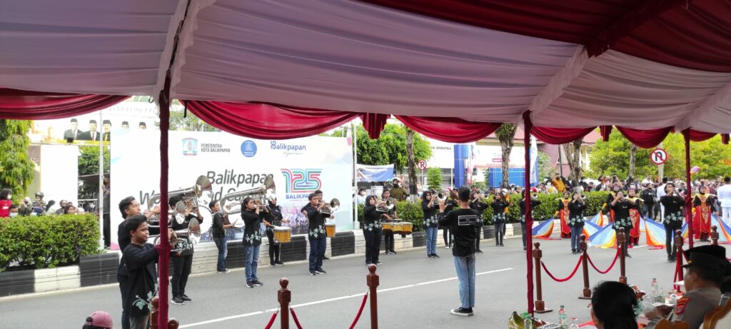 Tampak Wali Kota Balikpapan Rahmad Mas’ud didampingi unsur Forkopimda, Ketua DPRD Balikpapan, para Asisten dan Kepala OPD menyaksikan langsung pertunjukan yang dibawakan para peserta.