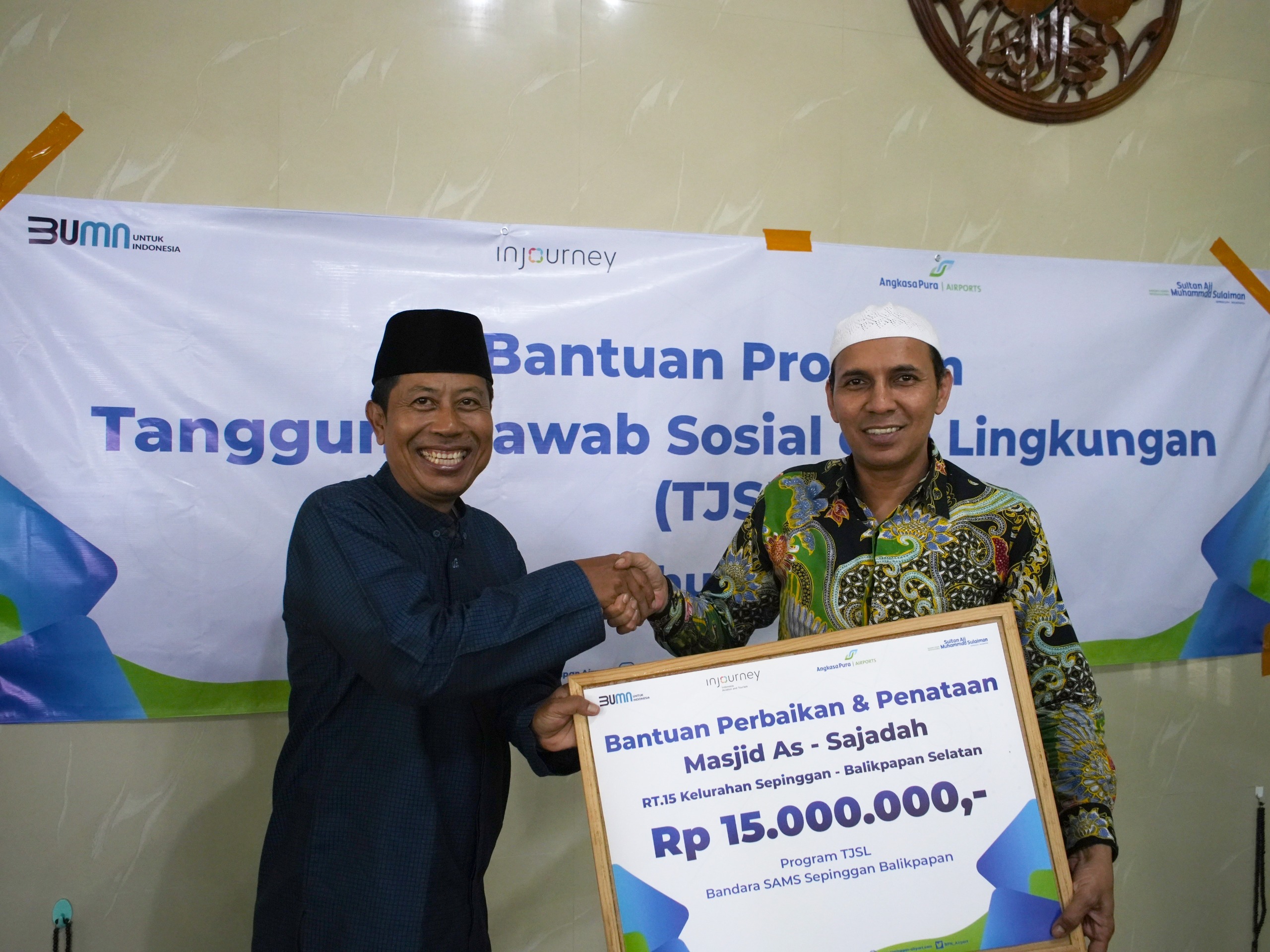 Disamping itu pada Hari Jumat kemarin pada tanggal 15 Desember 2023 PT Angkasa Pura I Balikpapan juga telah menyalurkan bantuan untuk perbaikan serta penataan Masjid As-Sajadah di Keluarahan Sepinggan “Syukur Alhamdulillah saya berharap dengan adanya bantuan ini dapat membuat para Jemaah Masjid As-Sajadah dapat melaksanakan ibadah dengan lebih nyaman,” kata Syaugi.
