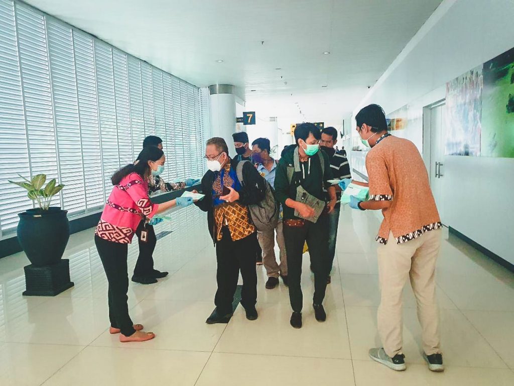 Bandara Sepinggan Balikpapan Bagikan 500 Masker dan 100 Hand Sanitizer kepada Pengunjung