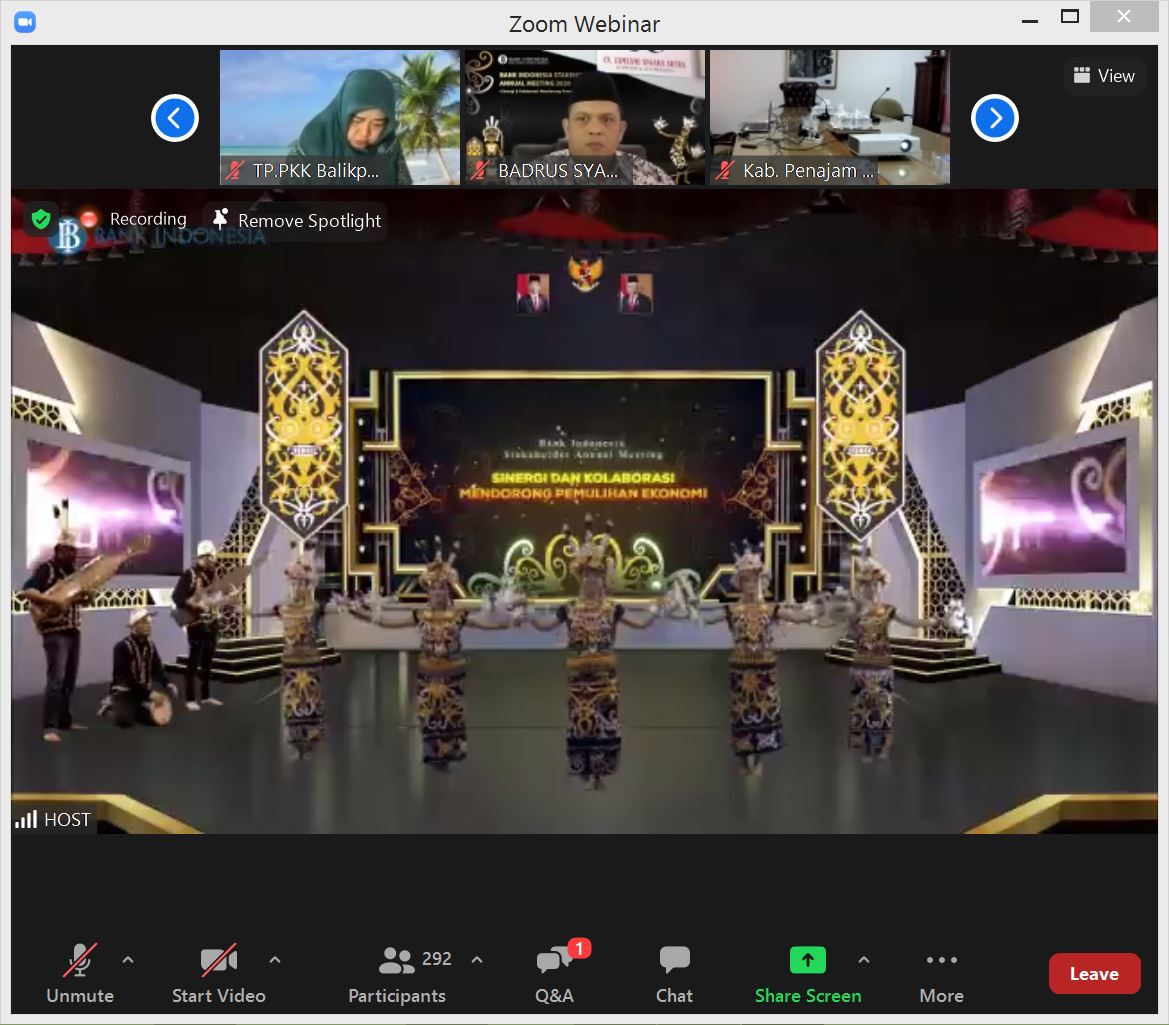 Bank Indonesia Stakeholder Annual Meeting 2020 mengangkat tema “Sinergi dan Kolaborasi Mendorong Pemulihan Ekonomi” secara daring yang dibuka langsung oleh Kepala Perwakilan Bank Indonesia Balikpapan, Bimo Epyanto.