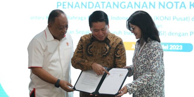 BALIKPAPAN, Inibalikpapan.com – Komite Olahraga Nasional Indonesia (KONI) Pusat, PSSI dan PT. Bank Syariah Indonesia,Tbk (BSI) menandatangani kesepahaman kerja sama (MoU) di Kantor KONI pada Selasa (30/05/2023).