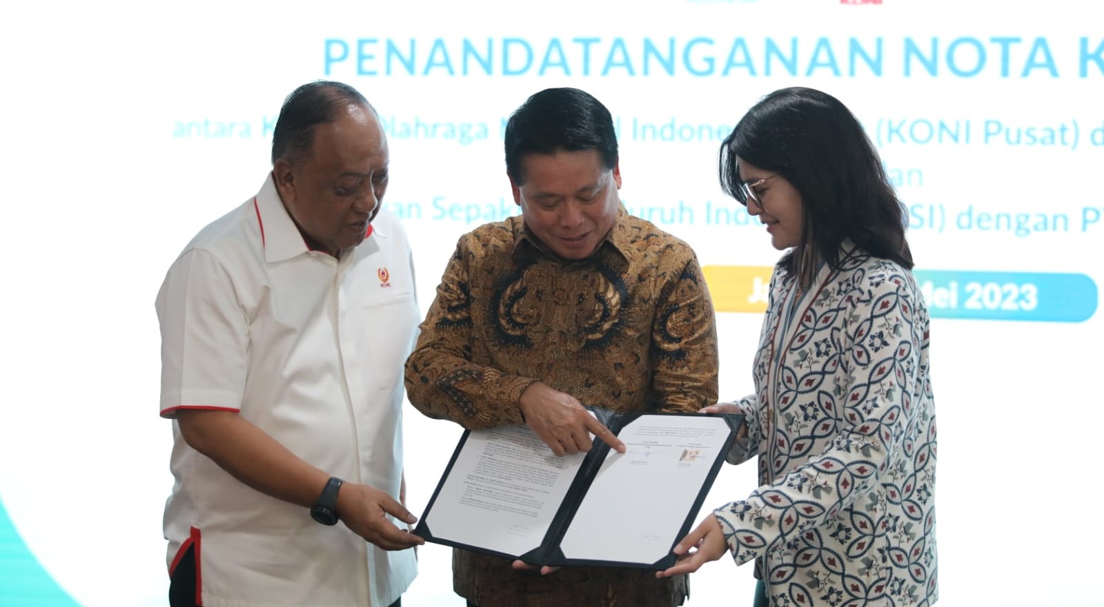MoU tersebut ditandatangani Ketua Umum KONI Pusat Letjen TNI Purn Marciano Norman, Wakil Ketua Umum PSSI Ratu Tisha Destria, dan Direktur Utama PT BSI Hery Gunard.