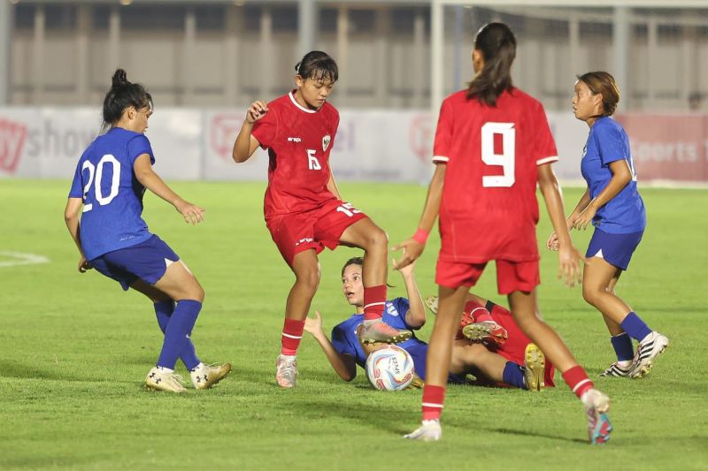 Timnas Wanita dalam laga uji coba internasional menang telak 5-1. Laga digelar di Stadion Madya, Jakarta.