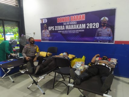 Kukar – Dalam rangka menyambut Ops Zebra Mahakam 2020, jajaran Satlantas Polres Kukar menggelar kegiatan bakti sosial (baksos) donor darah di ruang lobby Satlantas Polres Kukar, Jum’at (06/11/2020) pagi.