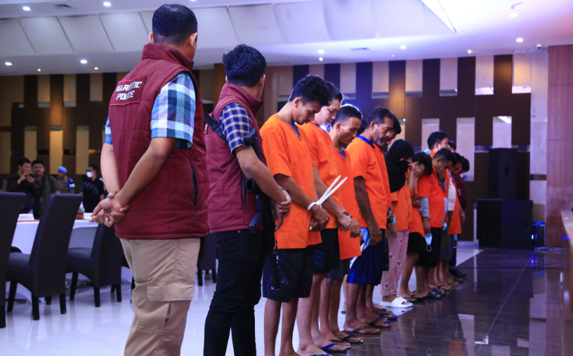 Para tersangka akan dihadapkan dengan Pasal 114 ayat (2) subsider Pasal 112 Ayat (2) Juncto Pasal 132 ayat (1) Undang-Undang Nomor 35 Tahun 2009 tentang Narkotika, yang menyatakan sanksi pidana yang berlaku termasuk pidana penjara minimal 6 tahun dan maksimal 20 tahun.