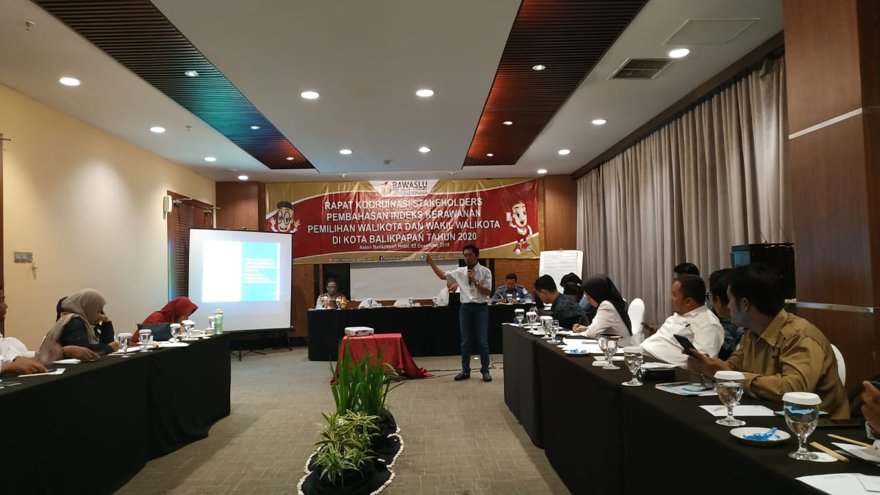 “Marilah kita susun instrumen pada angket ini. Diisi sejujur-jujurnyanya. Karena pengalaman kita sebelumnya indeks kerawanan Pemilu kaltim antara 0 sampai 100, Kaltim poinnya 44 sampai dengan 66,” ujar Ahmadi dalam kegiatan rapat koordinasi stakeholder yang diikuti sekitar 30 peserta di Hotel Aston Balikpapan pada Senin (02/12/ 2019) siang.