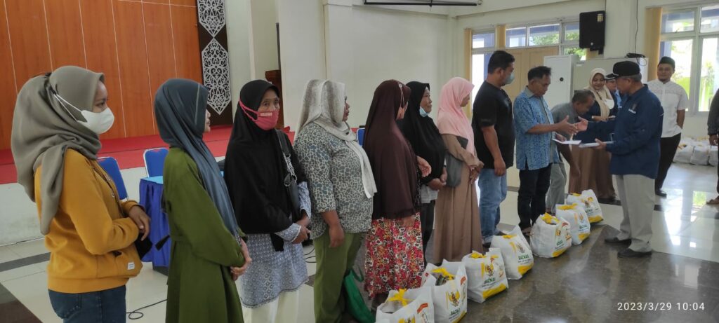 Penyerahkan 100 paket kepada para mustahik ini dilakukan di Aula Kantor Kecamatan Balikpapan Utara, Rabu (29/3/2023). Turut dihadiri pengurus Baznas Balikpapan dan Camat Balikpapan Utara Muhammad Idris.