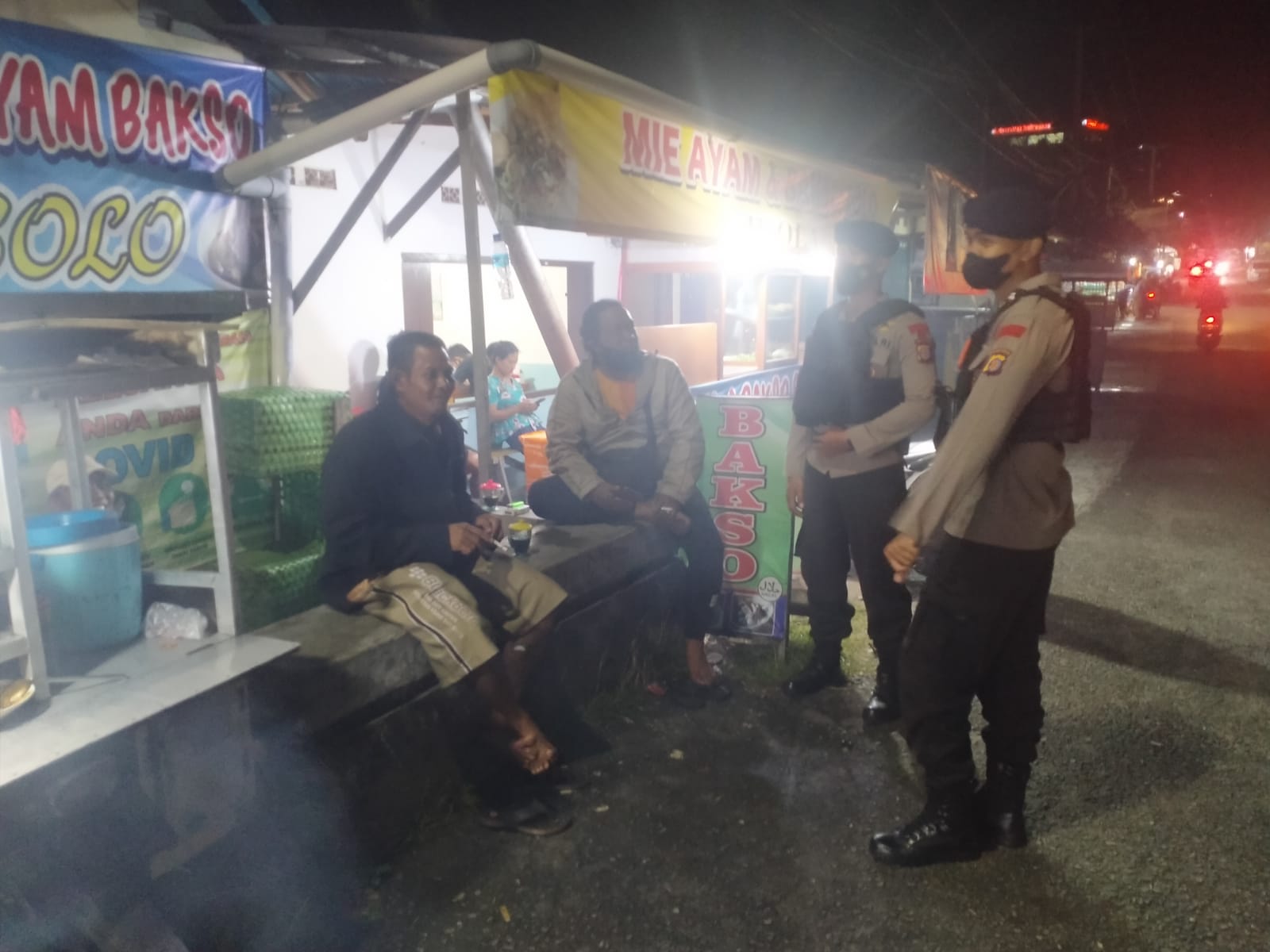 Terlihat para petugas patroli mampir diaman tempat warga berkumpul atau keramaian. personil Batalyon A Pelopor Satbrimob Polda Kaltim menyampaikan imbauan kamtibmas kepada warga agar selalu waspada terhadap lingkungan sekitar.