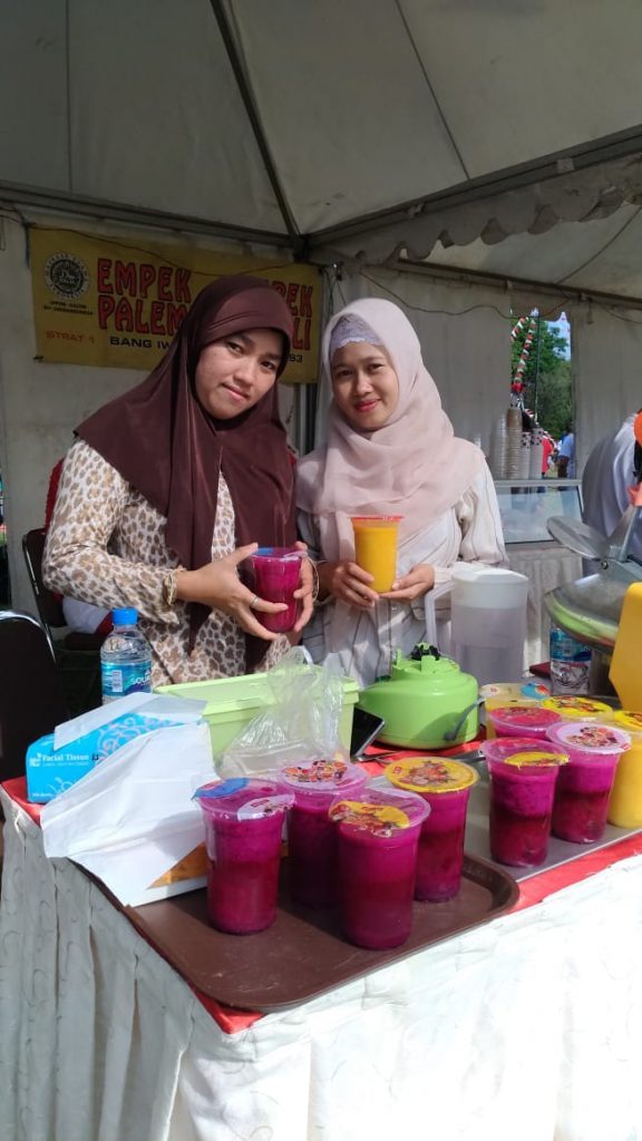 “Lebih dari 50 gelas juice buah naga kami bawa, ada yang dingin maupun tidak. Kami yakin buah naga yang disajikan juga murah pasti habis dibeli pengunjung,” imbuhnya.