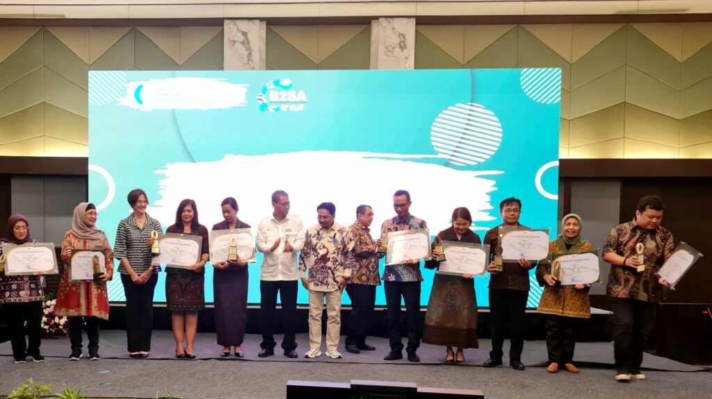Penyerahan penghargaan diberikan Plt Sekretaris Utama (Sestama) Badan Pangan Nasional Sarwo Edhy kepada Kepala Dinas Pangan Pertanian dan perikanan kota Balikpapan, Sri Wahjuningsih di Kampus Institut Pertanian Bogor (IPB), Selasa (28/2/2023).