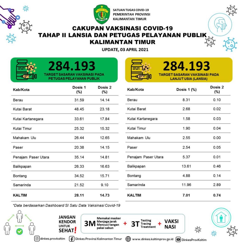 Berikut Cakupan Vaksinasi di Kaltim Tahap Satu dan Dua