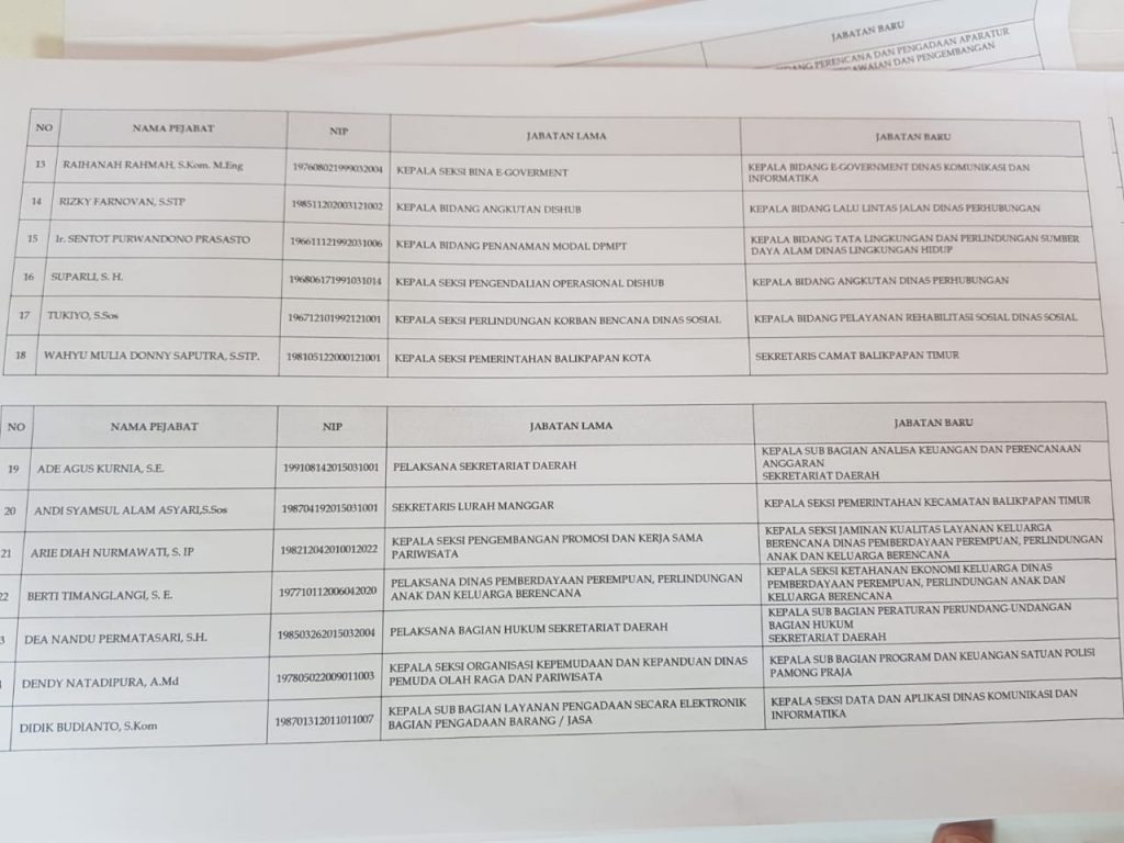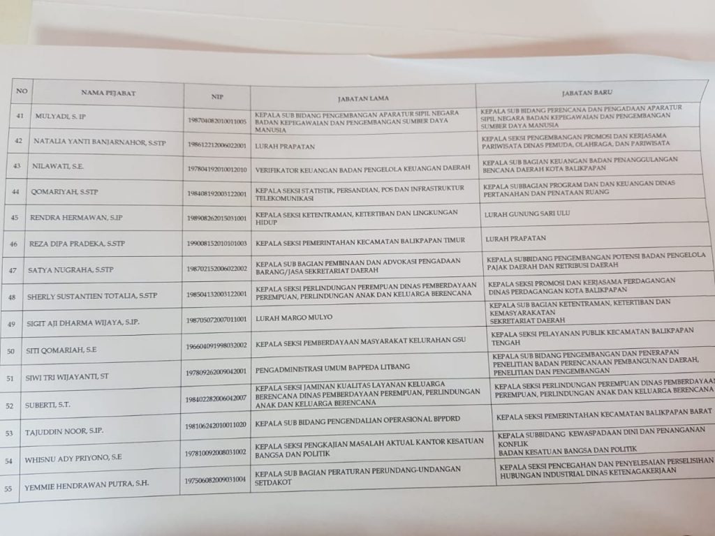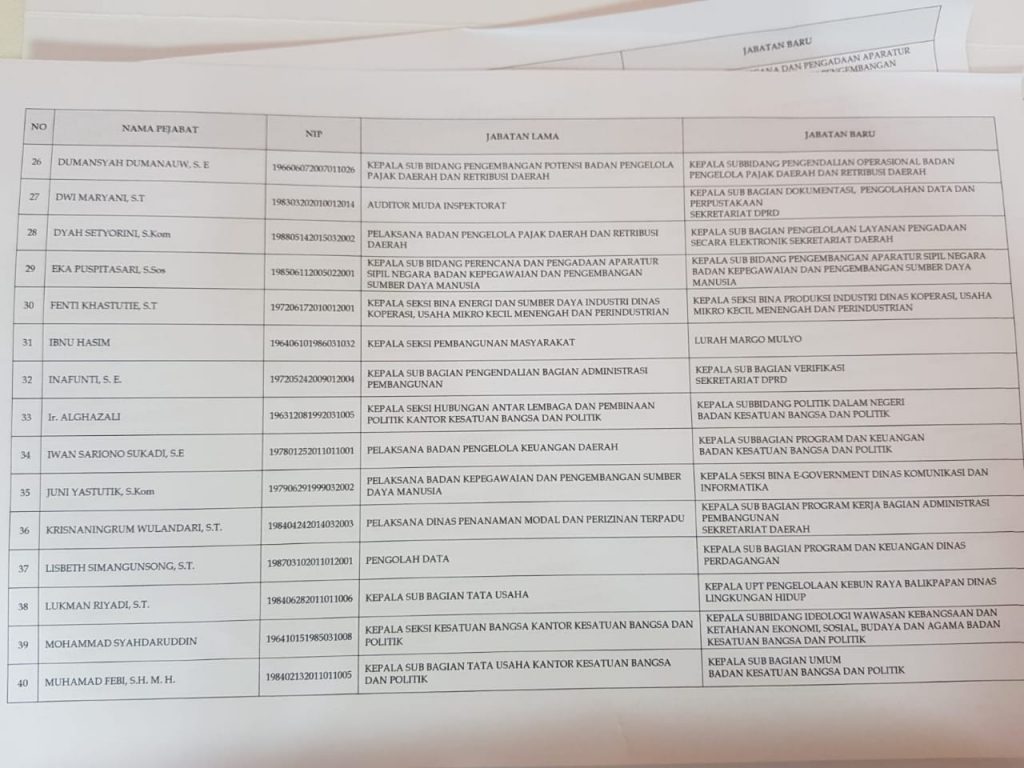 Berikut Daftar Lengkap 59 Pegawai Eselon III dan IV Pemkot Balikpapan yang Dimutasi