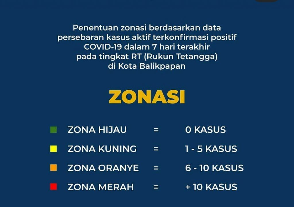 Berikut penentuan zona covid-19 PPKM skala mikro tingkat RT berdasarkan data Satgas Penanganan Covid-19 Kota Balikpapan
