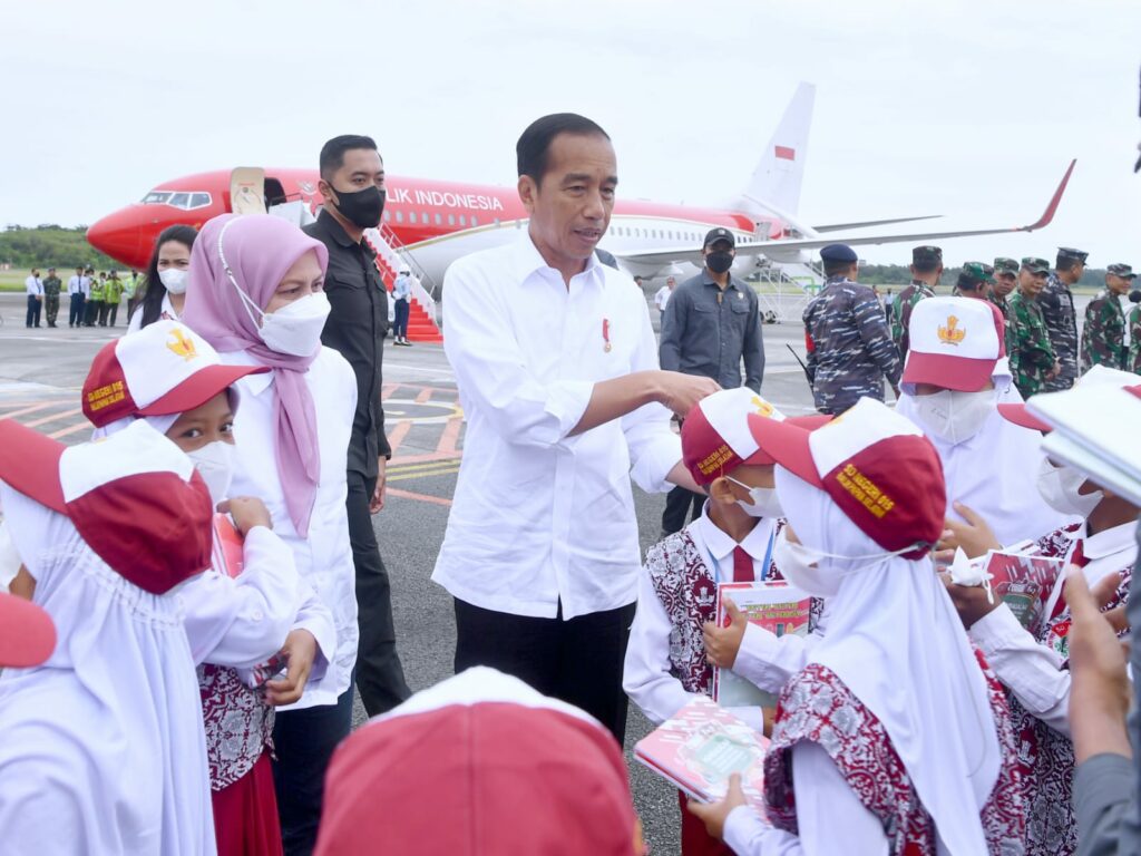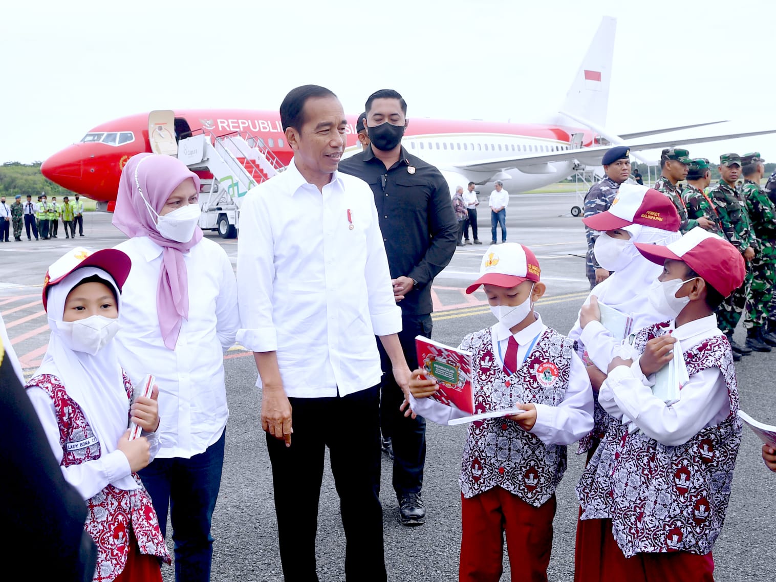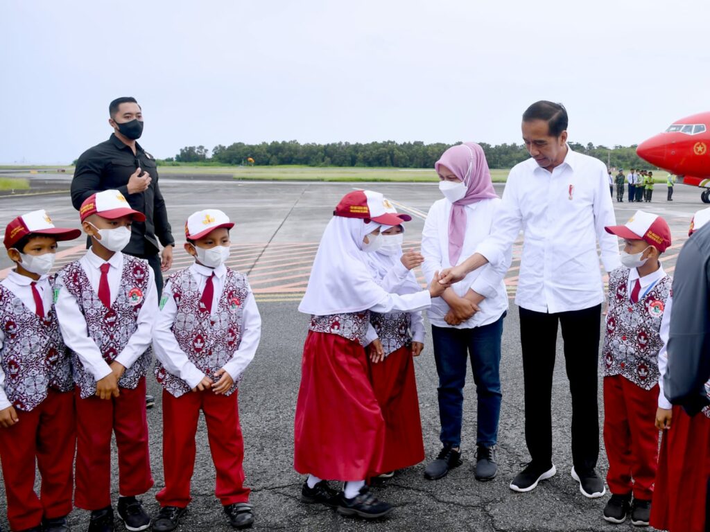 Dikutip dari Sekretariat Presiden, setibanya di apron, Presiden Jokowi dan Ibu Iriana langsung menghampiri barisan anak-anak tersebut dan berfoto bersama mereka.