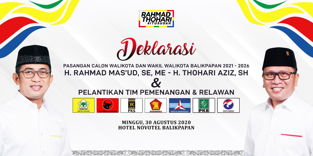 Rahmad Mas’ud – Thohari Azis diusung 7 partai politik yakni Golkar, PDI Perjuangan, Gerindra, PKS, Demokrat, PKB dan Perindo atau mengantongi 37 kursi di DPRD Kota Balikpapan.
