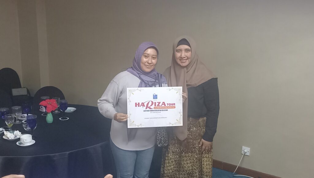 Hadir pula HARIZA TOUR sebagai mitra kerjasama, beserta rekan media. Pemenang hadiah umroh ada dua orang berhak atas fasilitas premium bintang 5 umroh.