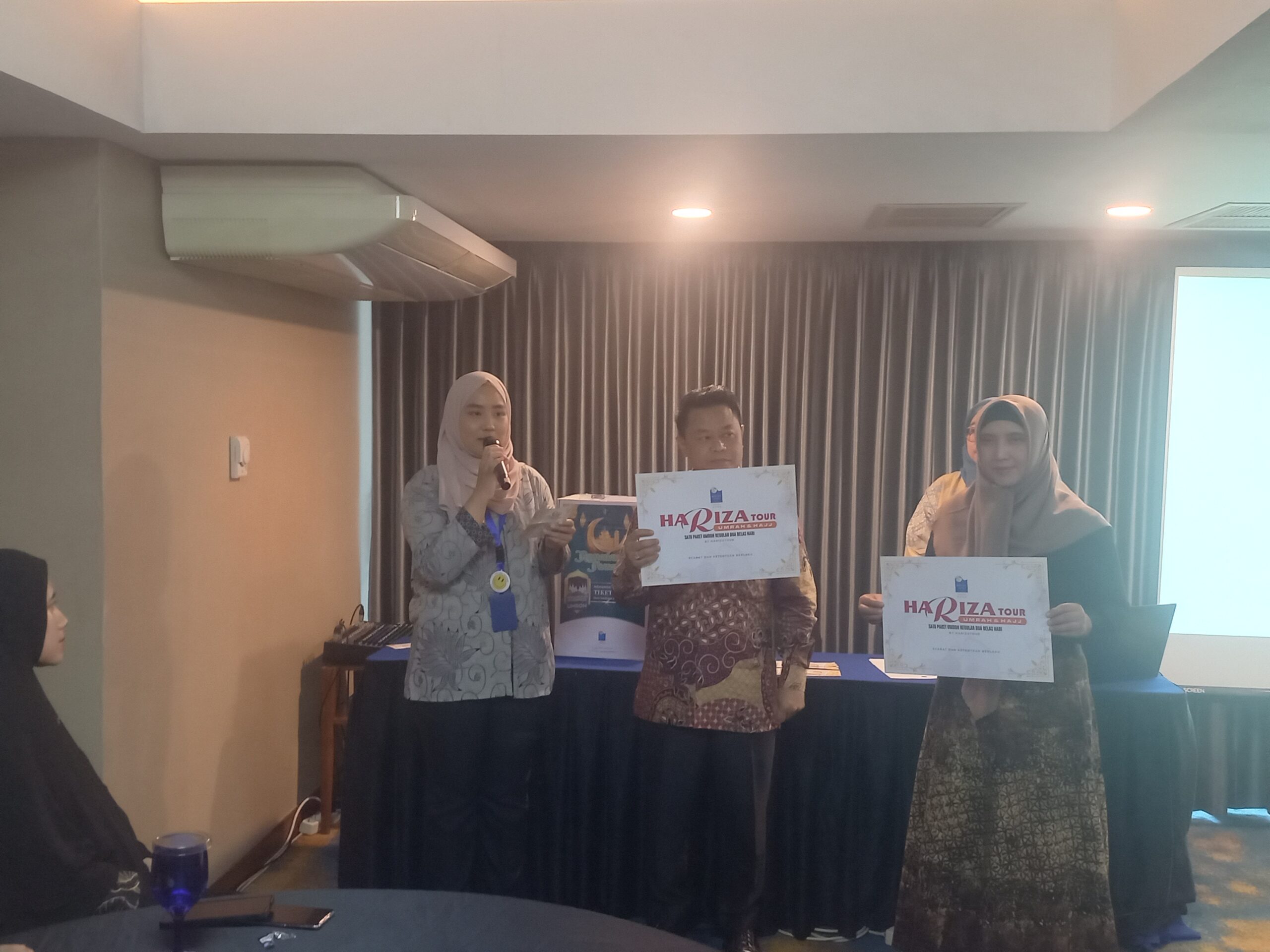 Hadir pula HARIZA TOUR sebagai mitra kerjasama, beserta rekan media. Pemenang hadiah umroh ada dua orang berhak atas fasilitas premium bintang 5 umroh.