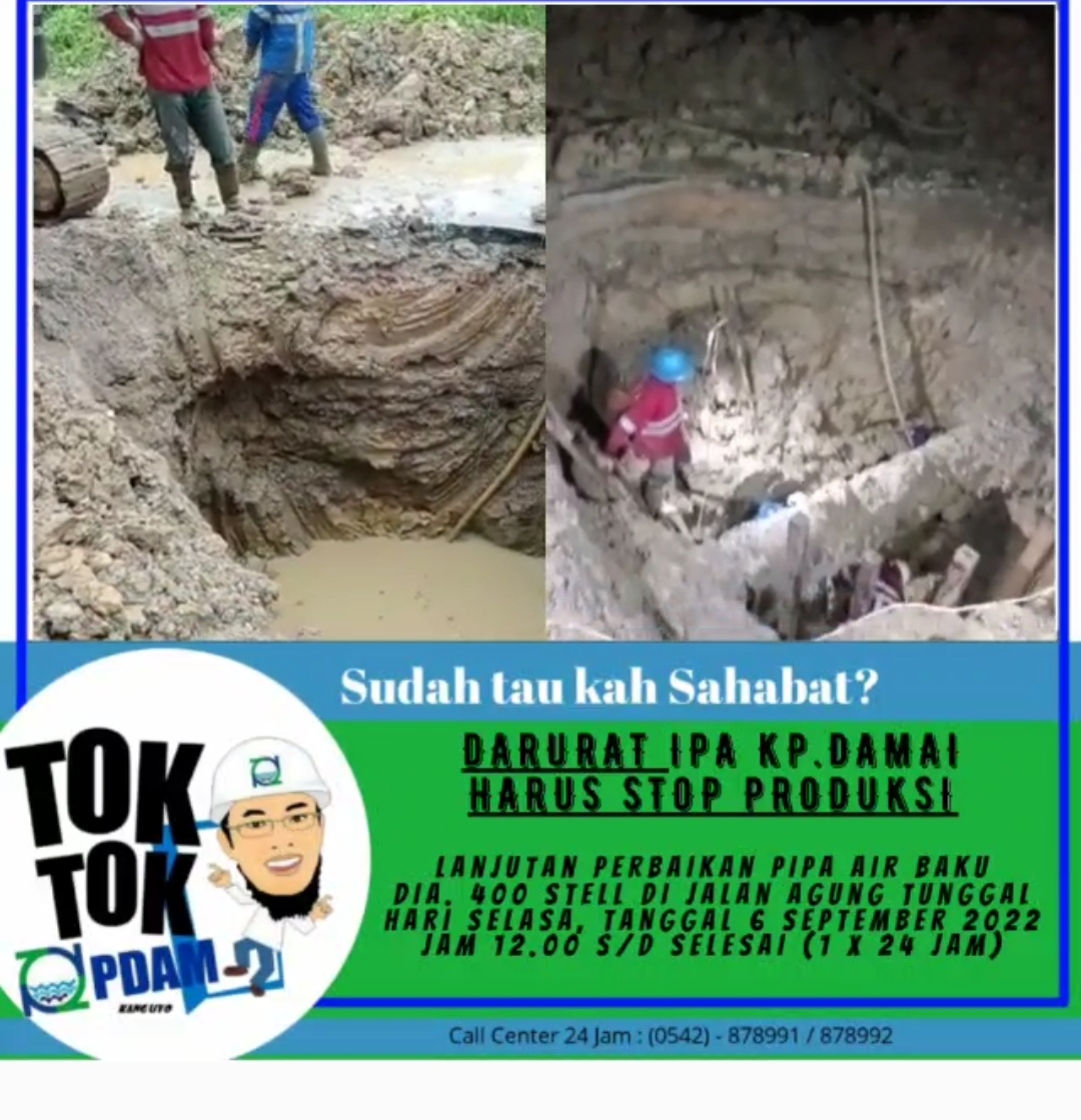 Ia juga mengingatkan bahwa, apabila perbaikan sudah selesai nantinya, proses Normalisasi kembalinya air ke rumah pelanggan membutuhkan waktu dan jarak.