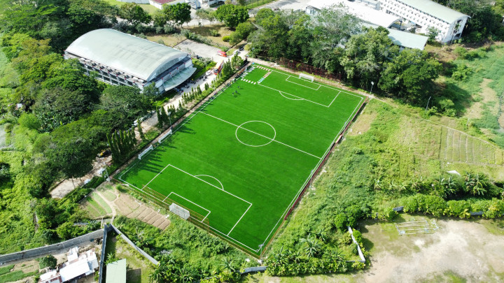 Keunggulan lain dari lapangan ini adalah jenis rumput yang digunakan. Menggunakan rumput sintetis, Syarif memastikan material ini juga sudah tersertifikasi standar yang dipakai FIFA.