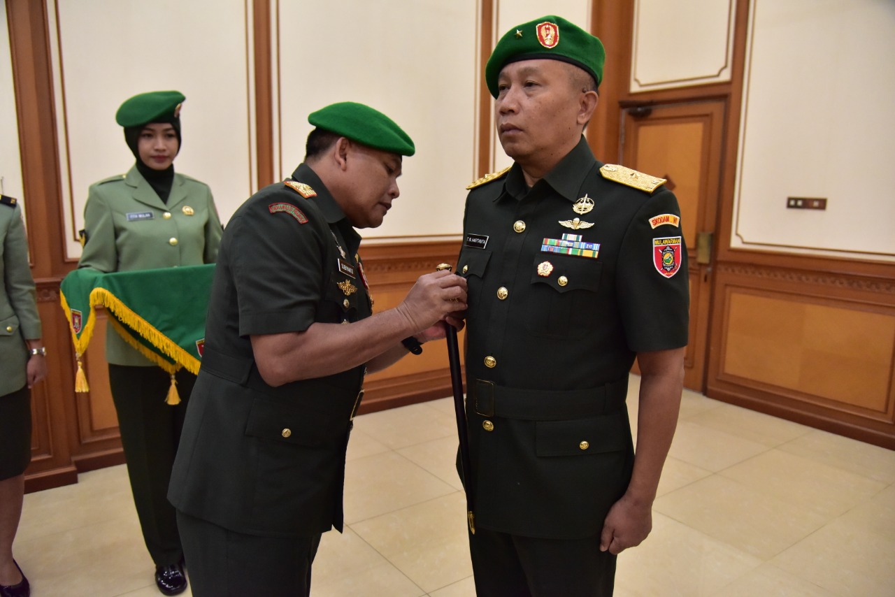 Penyerahan tugas dan jabatan ditandai dengan penyematan tanda jabatan, penandatanganan naskah memorandum dan tradisi penciuman pataka yang dipimpin oleh Pangdam VI/ Mulawarman Mayjen TNI Subiyanto.