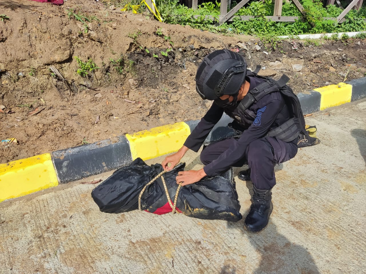 BALIKPAPAN, Inibalikpapan – Tim Jinak bom Brimob Polda Kaltim membersihkan mortir diduga bekas Perang Dunia II di kawasan Waduk Kelurahan Telagasari RT 37 Balikpapan.