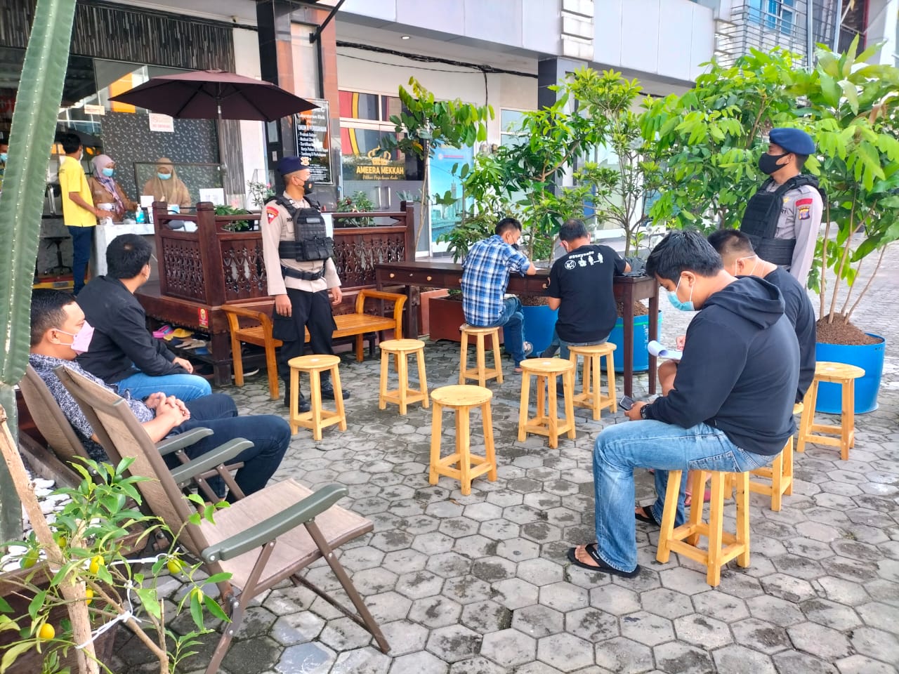 Patroli yang dipimpin Aiptu Budi Prayitno, meminta setiap warga agar mematuhi prokes khususnya memakai masker dan menghindari kerumunan karena kasus covid-19 tengah melonjak tinggi