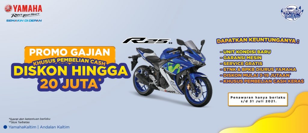 Promo Gajian Yamaha ini berlaku di area Balikpapan, Samarinda & Tenggarong. Untuk motor dalam promo tersebut menurut Efendy hampir semua type Yamaha ada, antara lain seperti motor sport R25 GP Movistar, R 15, All New Vixion, MX King 150, Aerox 155 VVA,Lexi VVA, dan Yamaha FreeGo, Mio S.