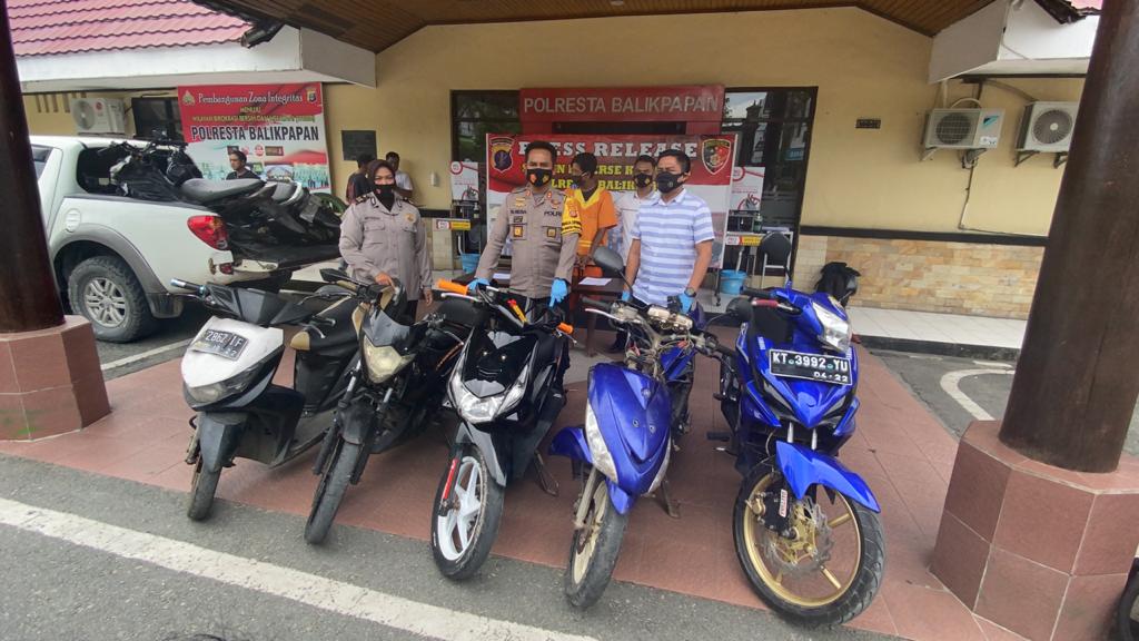 Dari tangan pelaku, Satreskrim Polresta Balikpapan berhasil mengamankan 8 unit kendaraan bermotor diantaranya Suzuki Satria F, Honda Beat, Mio Soul, Jupiter MX dan Vario. Sebagian kendaraan terlihat sudah dipreteli dan dijual.