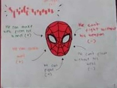 “Namun saya juga memberi tugas mereka untuk mencatat kata-kata baru yang didapat pada kertas plano pekerjaan kelompok lainnya. Ternyata dengan menggunakan contoh superhero, banyak kosa kata baru muncul yang dicatat para siswa, misalnya: resist, martial arts, hibernate, camouflage, stronghold dan lain-lain. Saya biasa meminta mereka menghapal kosa kata baru yang telah mereka dapatkan, atau memberi tugas berdasarkan kalimat yang mereka dapatkan,”