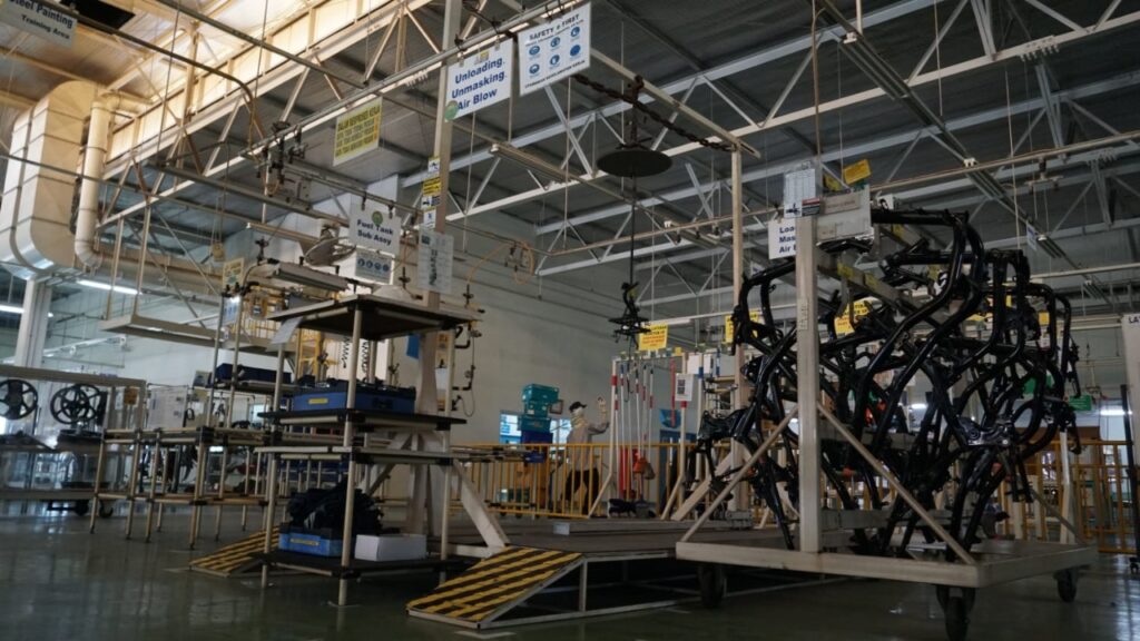 Setelah itu, tour pun berlanjut ke bagian Welding Line untuk menyaksikan proses pembuatan frame, baik itu proses pembentukan (bending) maupun pengelasan yang sudah memanfaatkan teknologi robotik.
