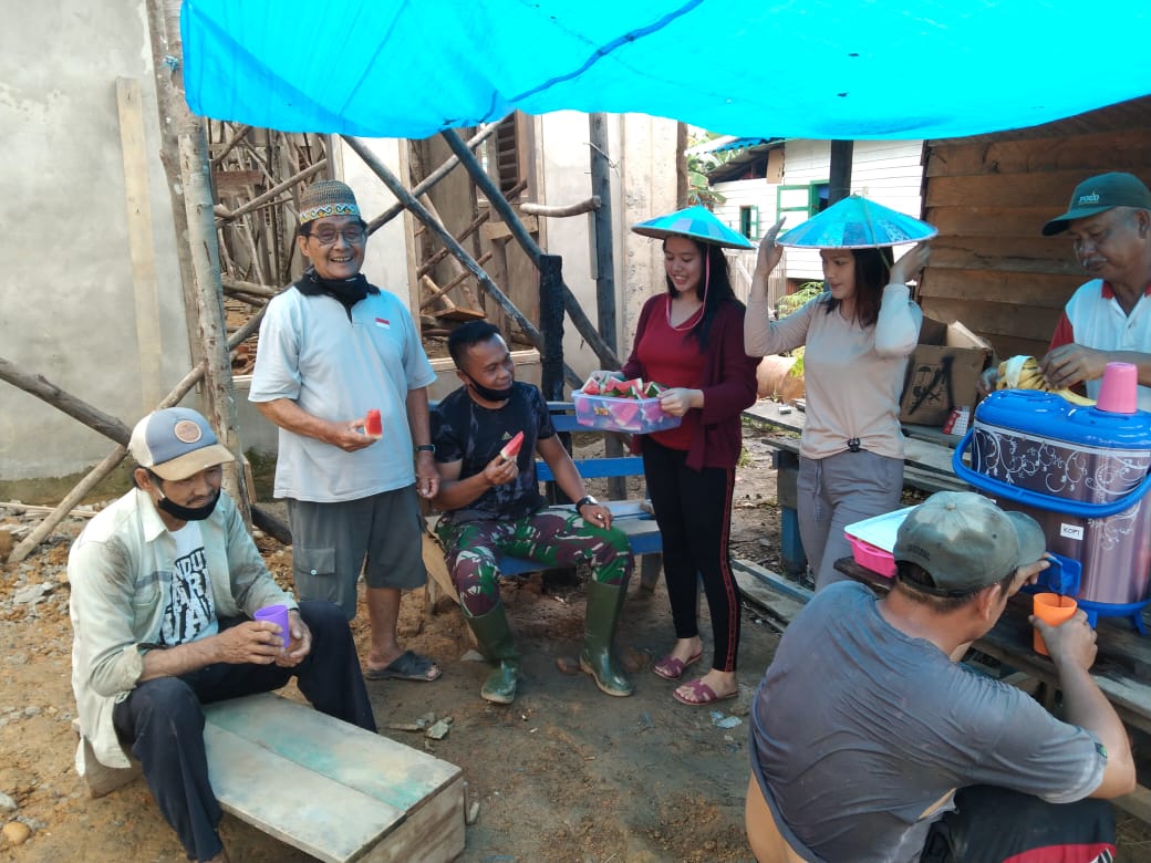 Di saat Koordinator lapangan Kapten Inf Mashuri A Bakari bersama dengan anggota Satgas TMMD beserta warga pada waktu istirahat sambil meluruskan dan melempangkan badan untuk menghilangkan lelah dari pengerjaan pembangunan Gereja GKPI, tiba-tiba didatangi oleh Desi (21) dan Anti (18) sembari menawarkan buah semangka yang sudah terpotong-potong, melihat segarnya untuk menghilangkan haus, buah semangka tersebut tidak menunggu lama ludes tanpa sisa, Sabtu (17/10/2020).
