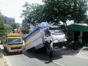 BALIKPAPAN,-Inibalikpapan.com,- Sebuah truk Isuzu nomor polisi KT 1585 LO tampak “ngangkang” di tanjakan Jl. Mt Haryono tak jauh dari RSKD Balikpapan, sekitar pukul 11.30 Wita. Truk bermuatan besi yang ditutupi terpal berwarna biru ini diduga kelebihan beban. Akibatnya, arus lalulintas tersendat, dan dilakukan pengalihan arus ke jalur sebelahnya. Kemacetan parah pun terjadi di sepanjang kawasan […]