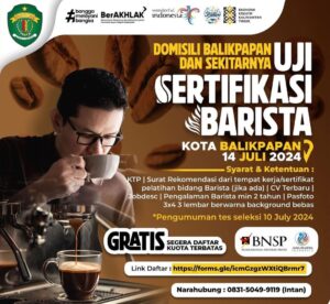BALIKPAPAN, inibalikpapan.com – Pemprov Kaltim, melalui Dinas Pariwisata, akan menggelar uji sertifikasi barista pada 14 Juli 2024. Ajang ini bertujuan untuk meningkatkan kompetensi para barista lokal serta mendukung perkembangan industri kopi di Baca Juga:Taxi Terbang IKN Akan Uji Coba Bulan Depan di Bandara Samarinda dan sekitarnya. Sertifikasi ini bekerja sama dengan Badan Nasional Sertifikasi Profesi […]