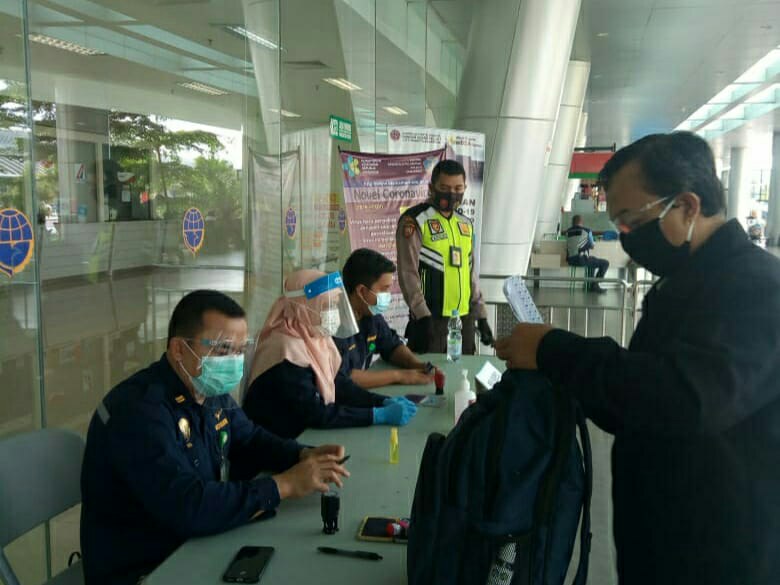 Untuk mengantisipasi penyebaran Covid-19 melalui Bandara APT Pranoto Samarinda, Personel Polsek Sungai Pinang bersama personel TNI melaksanakan monitoring warga masyarakat yang akan berangkat, maupun yang baru tiba dengan mengunakan jasa penerbangan, Sabtu (08/08/2020).