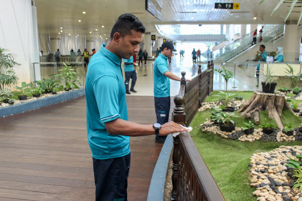 “Maka dari itu pembersihan fasilitas ini mulai Jumat dan Sabtu 2020 akan secara rutin dilakukan yakni 2 kali sehari oleh Karyawan dan Karyawati Angkasa Pura I Balikpapan serta Anak Perusahaan,” ujarnya.