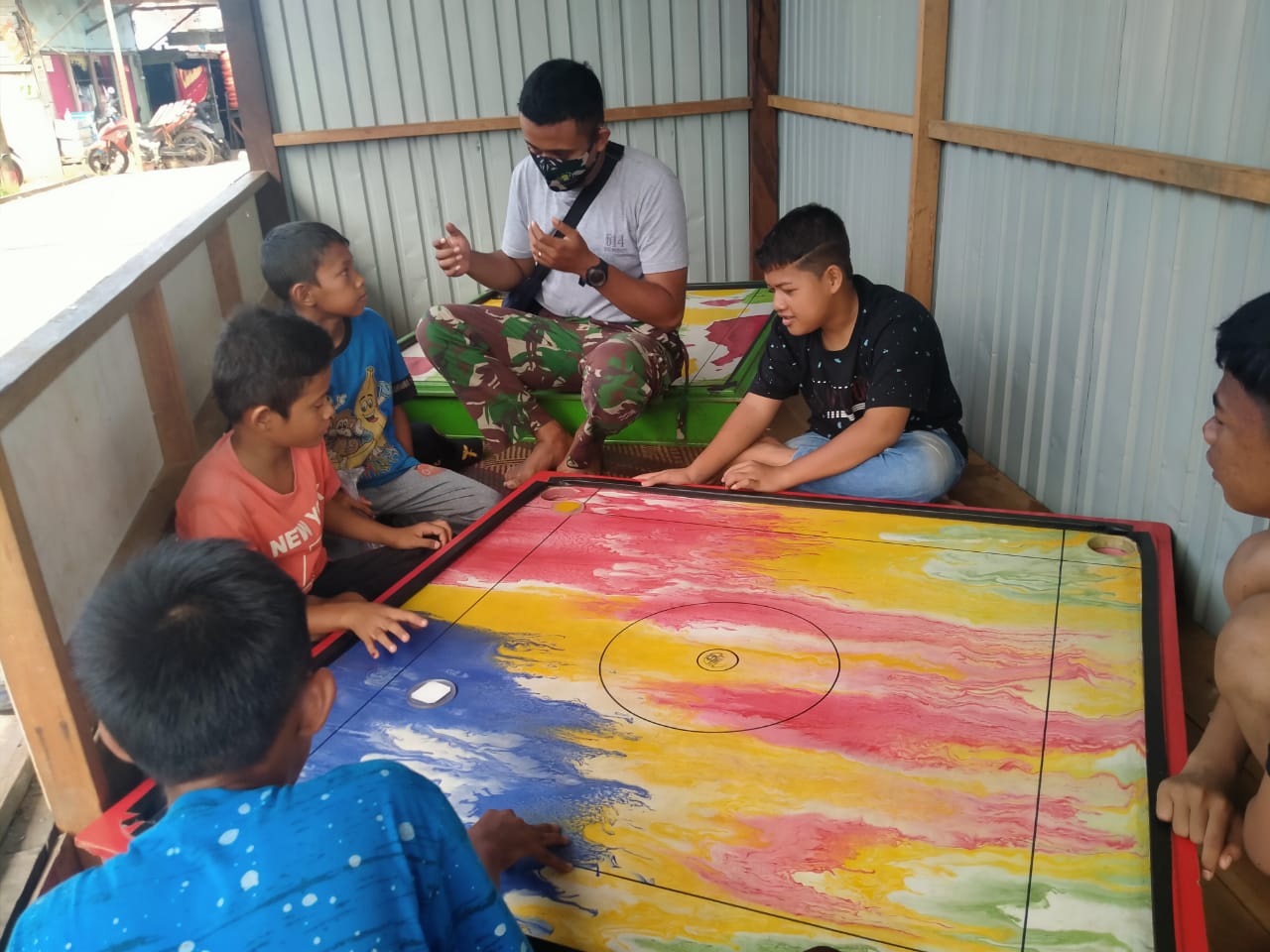 AMUNTAI, Inibalikpapan.com – Menghilangkan penat Personel Satgas TMMD jalin keakraban bersama anak-anak Desa Sarang Burung yang menjadi tempat berlangsungnya Kegiatan TMMD Ke 109 Kodim 1001/Amuntai, Minggu (11/10/2020)