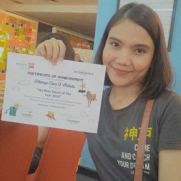 BALIKPAPAN, Inibalikpapan – Clara Gabriella Adinda Silitonga yang merupakan karyawan Novotel Ibis Balikpapan, bersama dua pegawai lainnya terpilih menjadi karyawan terbaik dalam ajang Best Talent Of The Year (BTOTY) 2020 yang digelar Accors Hotel Group wilayah Kalimantan Sulawesi.