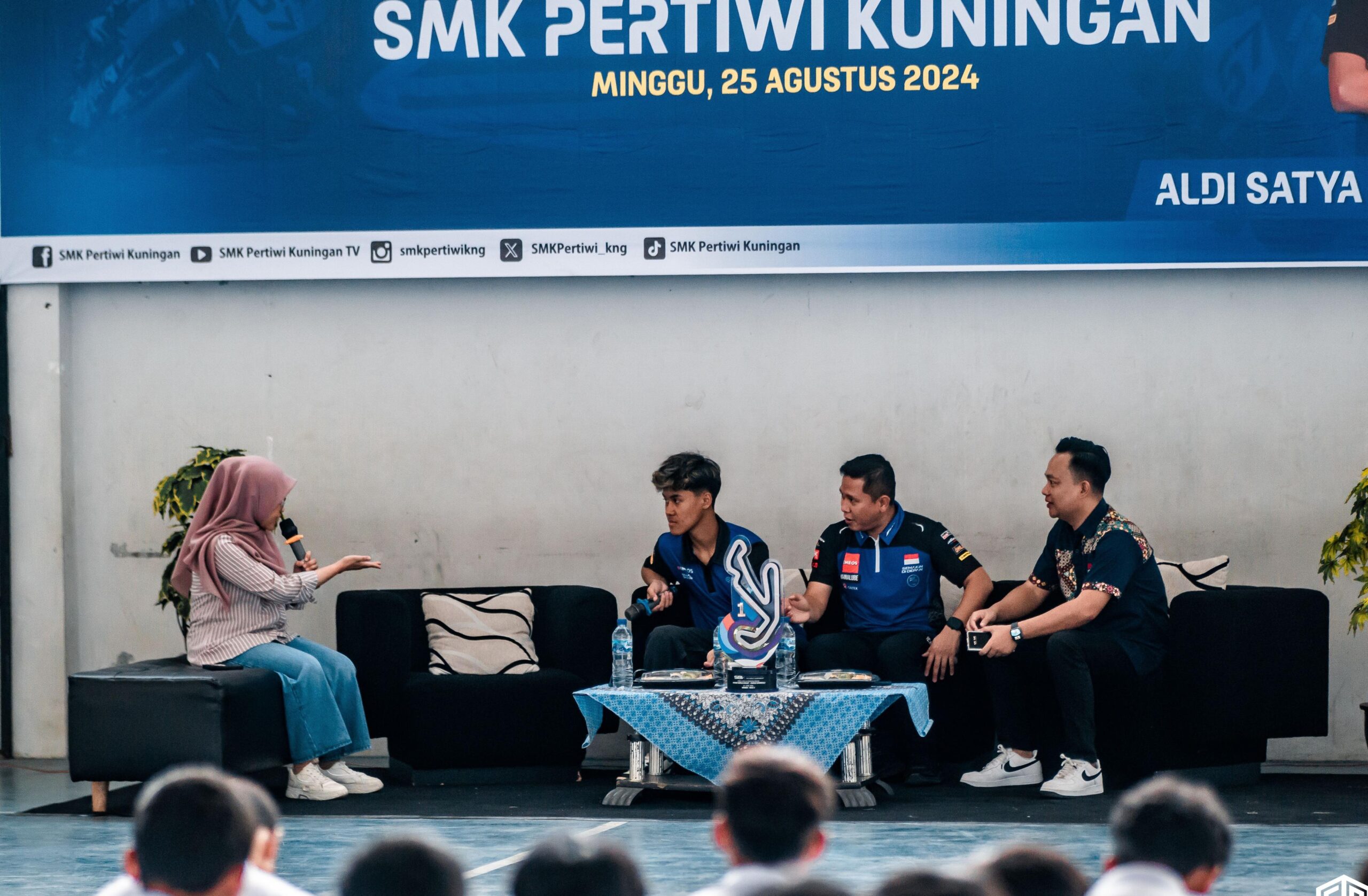 Aldi Satya Mahendra, pembalap asal Yogyakarta yang meraih kemenangan di seri 3 Misano World Supersport 300 musim 2024 dan seri Ceko 2023 saat berstatus pembalap wild card, menyebutkan dirinya senang bisa membagi pengalamannya kepada para siswa SMK Pertiwi Kuningan.