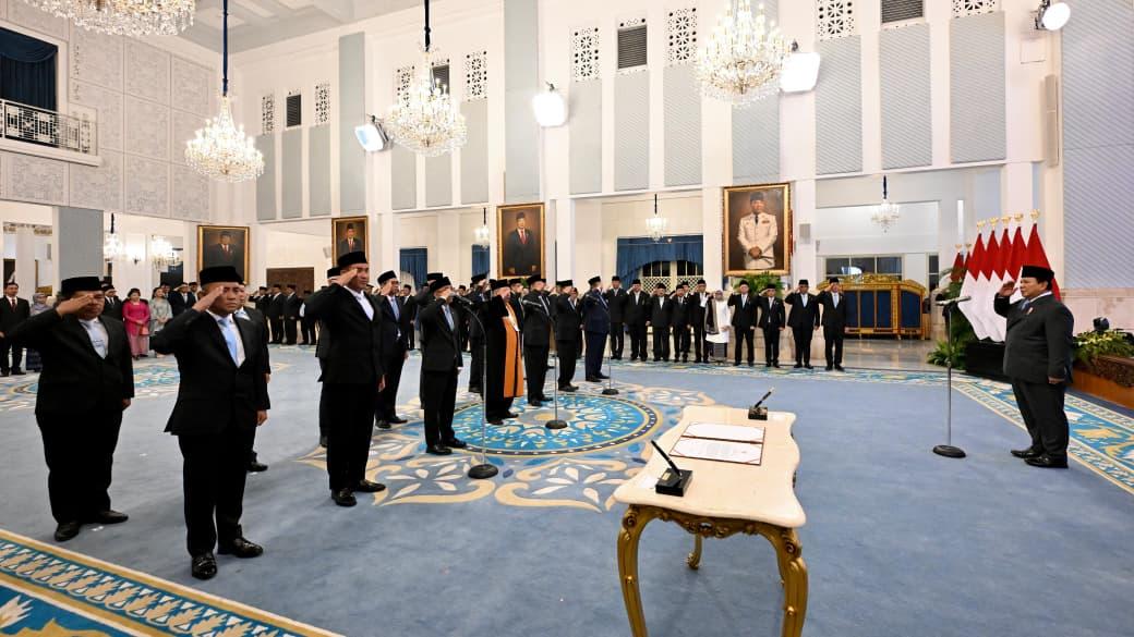Prosesi pelantikan diawali dengan pengucapan sumpah jabatan yang dipandu langsung Presiden Prabowo Subianto.