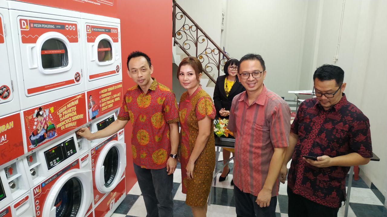 Peresmian londri coin atau dikenal dengan The Daily Wash Laundromat dilakukan langsung CEO Herlambang Prayitno bersama mitra di Balikpapan sekaligus Owner The Daily Wash Balikpapan Agus Biyantoro dan istri Rika Ekayanti Sormin, di outletnya jalan DR Sutomo Gunung Kawi, Balikpapan Tengah, Sabtu (29/8/2020).