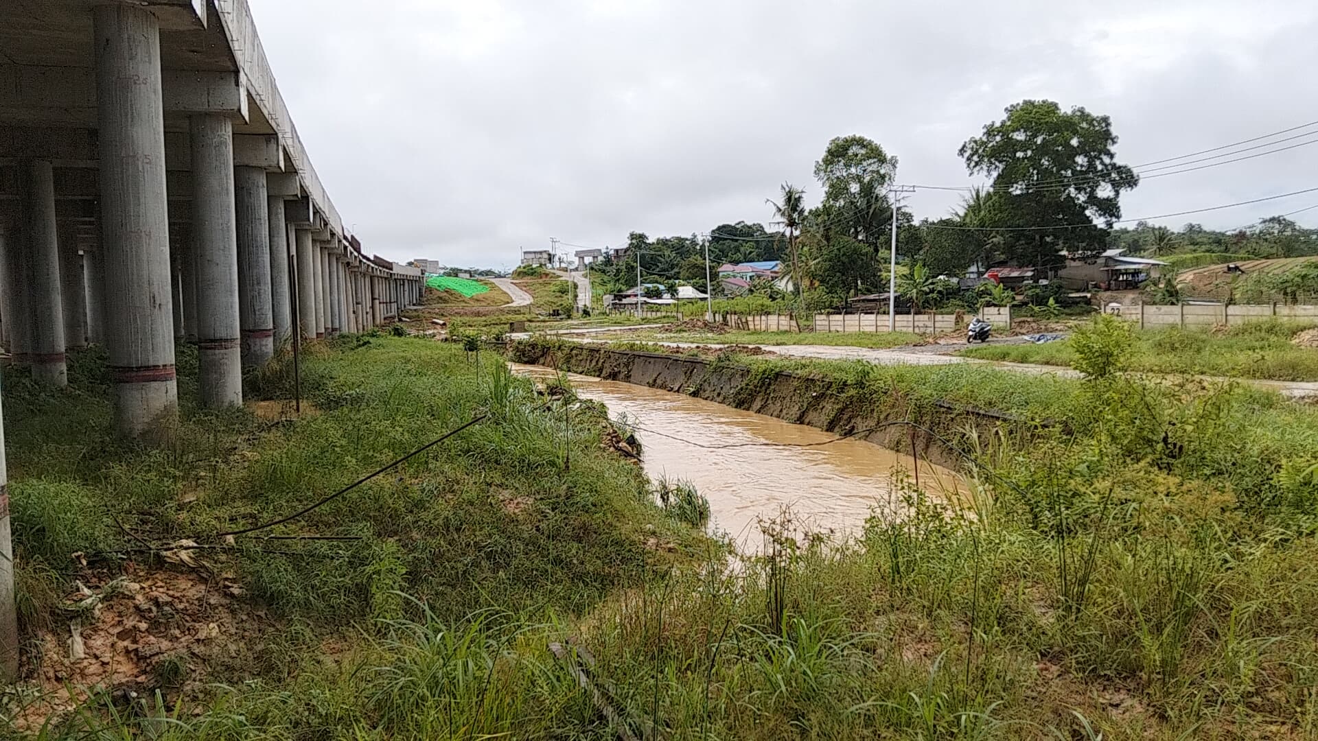 Menurut warga, genangan air kerap terjadi karena tidak adanya sistem pembuangan air yang memadai di sisi jalur tol. Parit dan gorong-gorong yang seharusnya berfungsi menampung air hujan justru dalam kondisi tersumbat, sehingga air mengalir deras ke lingkungan sekitar, termasuk ke area sekolah.