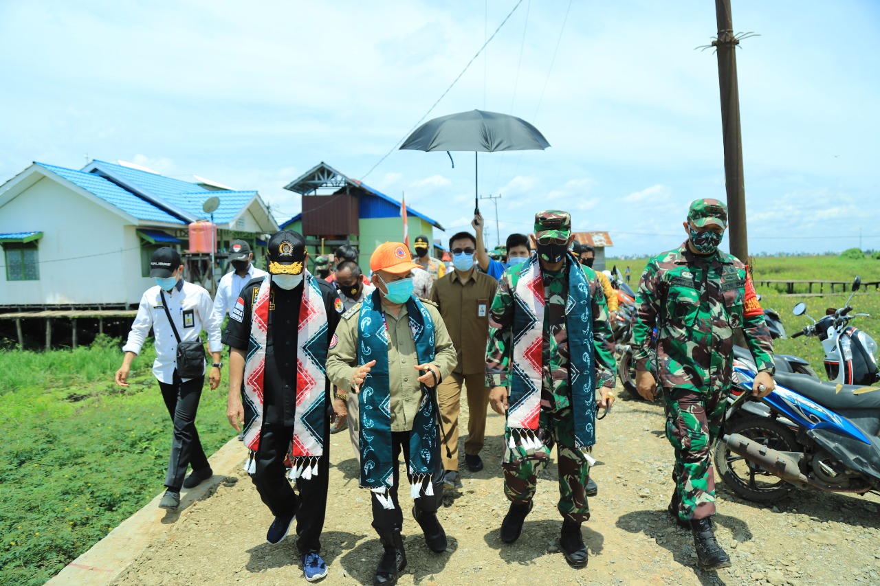 AMUNTAI, Inibalikpapan.com – Usai Kegiatan Penutupan TMMD Ke 109 yang digelar di Aula Idham Chalid Kabupaten Hulu Sungai Utara, Komandan Korem 101/Antasari, Brigjen TNI Firmansyah beserta Rombongan melaksanakan peninjauan di lokasi berlangsungnya TNI Manunggal Membangun Desa (TMMD), Bertempat di Desa Sarang Burung Kecamatan Danau Panggang, Kabupaten Hulu Sungai Utara,Rabu (21/10/2020)
