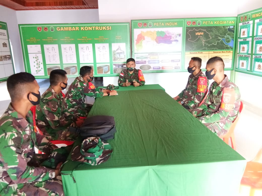 Pengarahan di Kotis TMMD Desa Makmur RT10 Kecamatan Tulin Onsoi Kabupaten Nunukan dimana tempat dilaksanakannya TMMD ke-108 Kodim Nunukan, Rabu (08/07/2020).